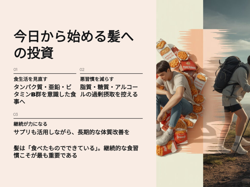 今日の食事を少し変えるだけで、未来の髪は確実に変わります。