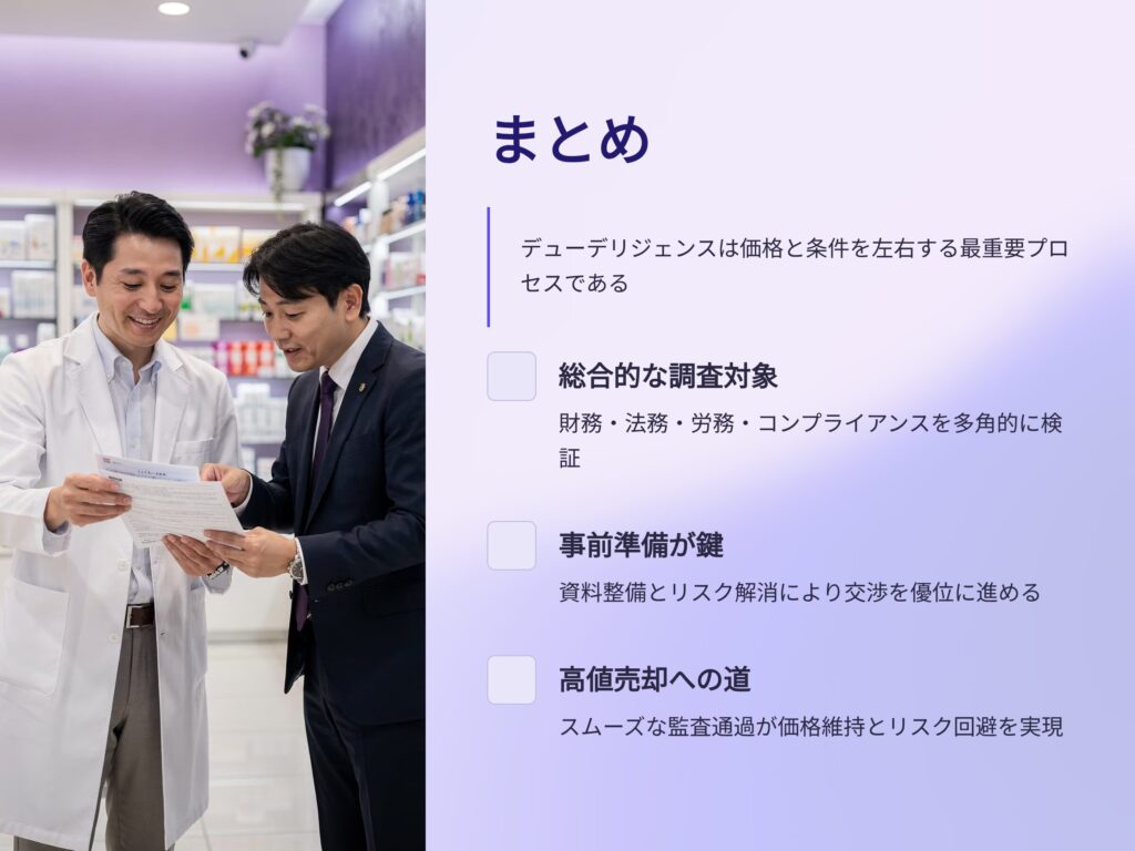 薬局売却における買収監査(デューデリジェンス)は、価格や条件を左右する最重要プロセスです。