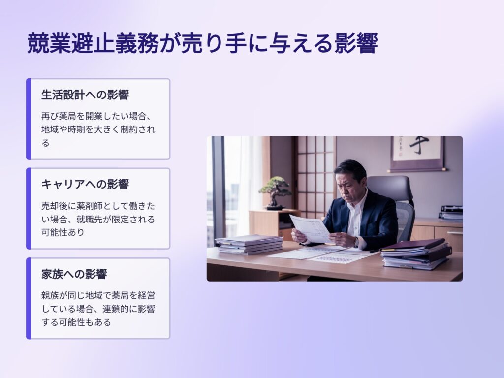 → 再び薬局を開業したい場合、地域や時期を大きく制約される - キャリアへの影響