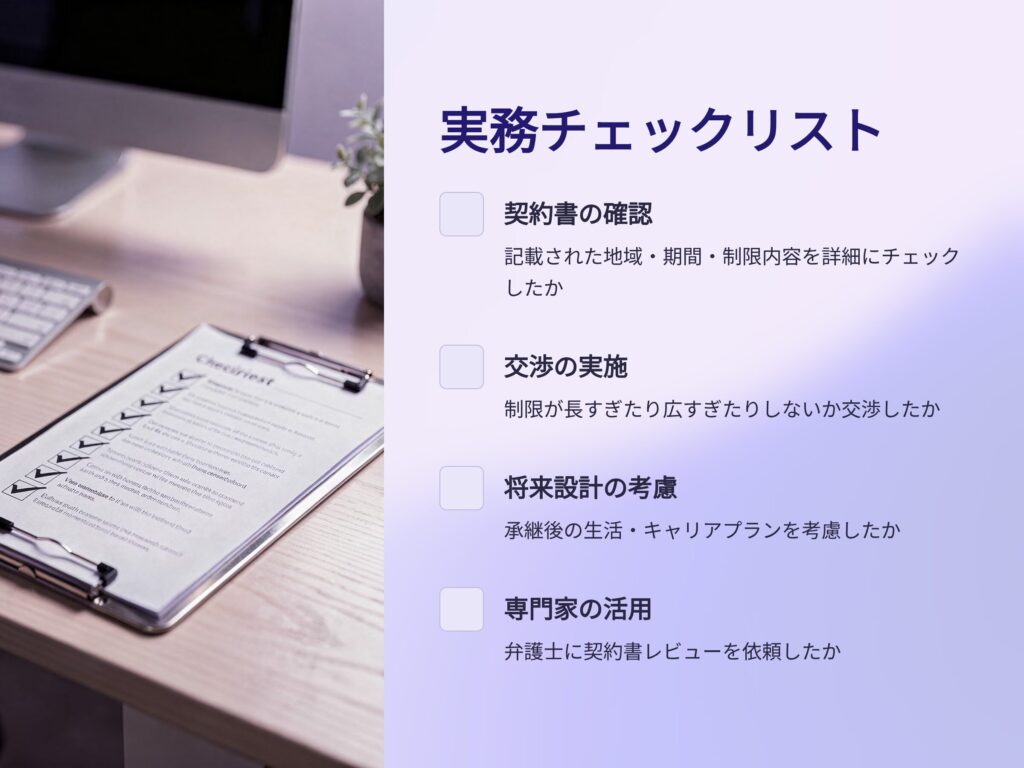 - 契約書に記載された地域・期間・制限内容を確認したか