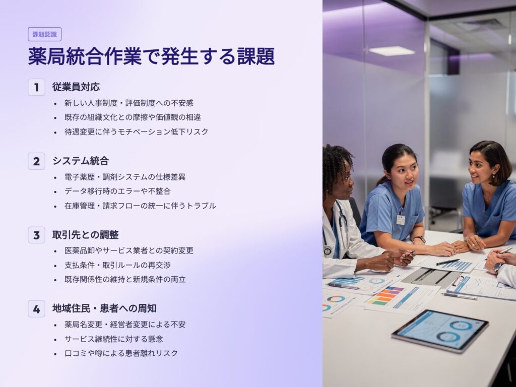 薬局統合作業で発生する課題