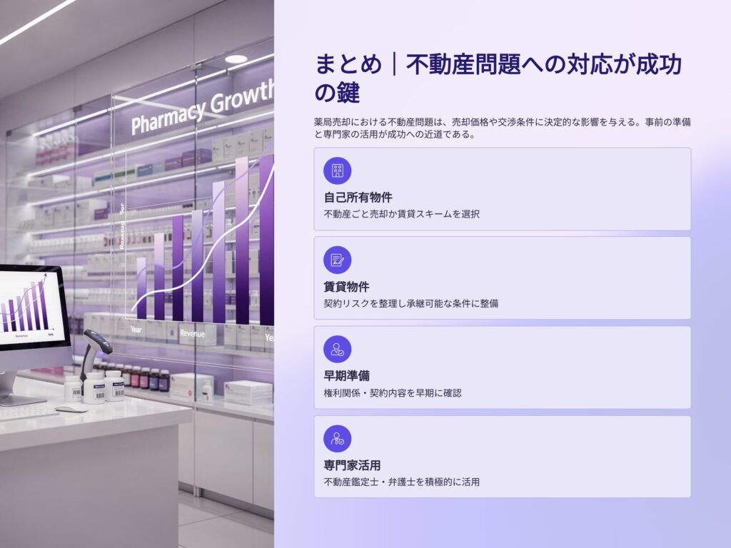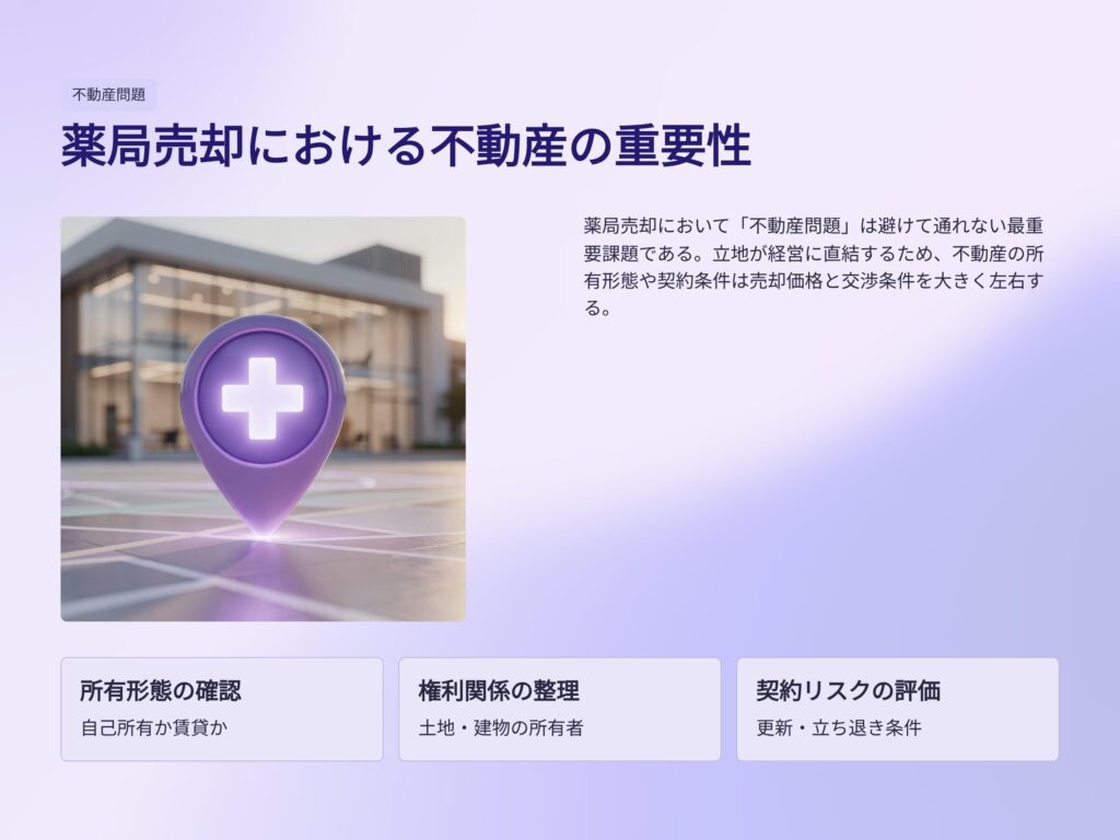 薬局売却における不動産問題は、価格や交渉条件に大きく影響します。