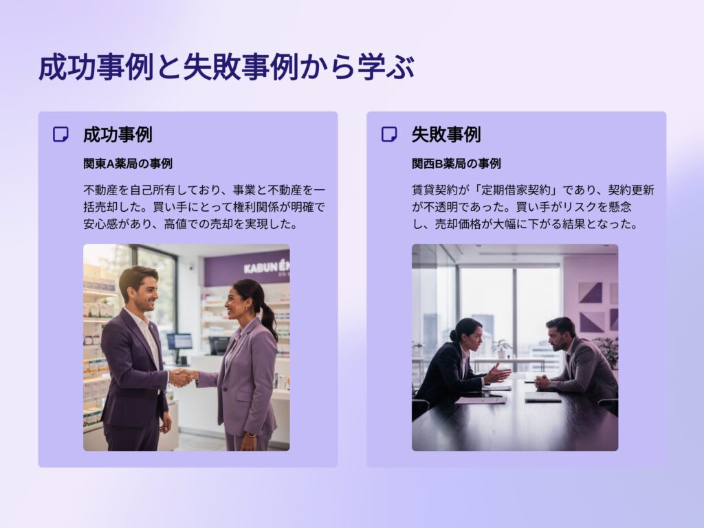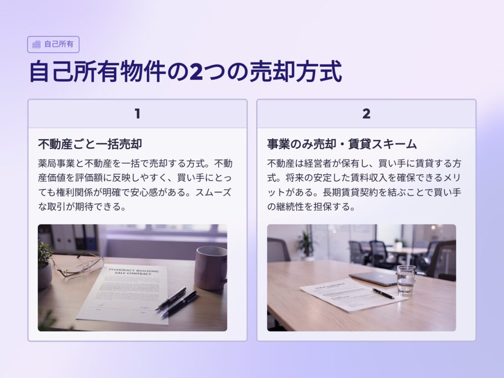 薬局は立地が経営に直結するため、売却交渉において不動産の所有形態や契約条件は重要な評価要素となります。