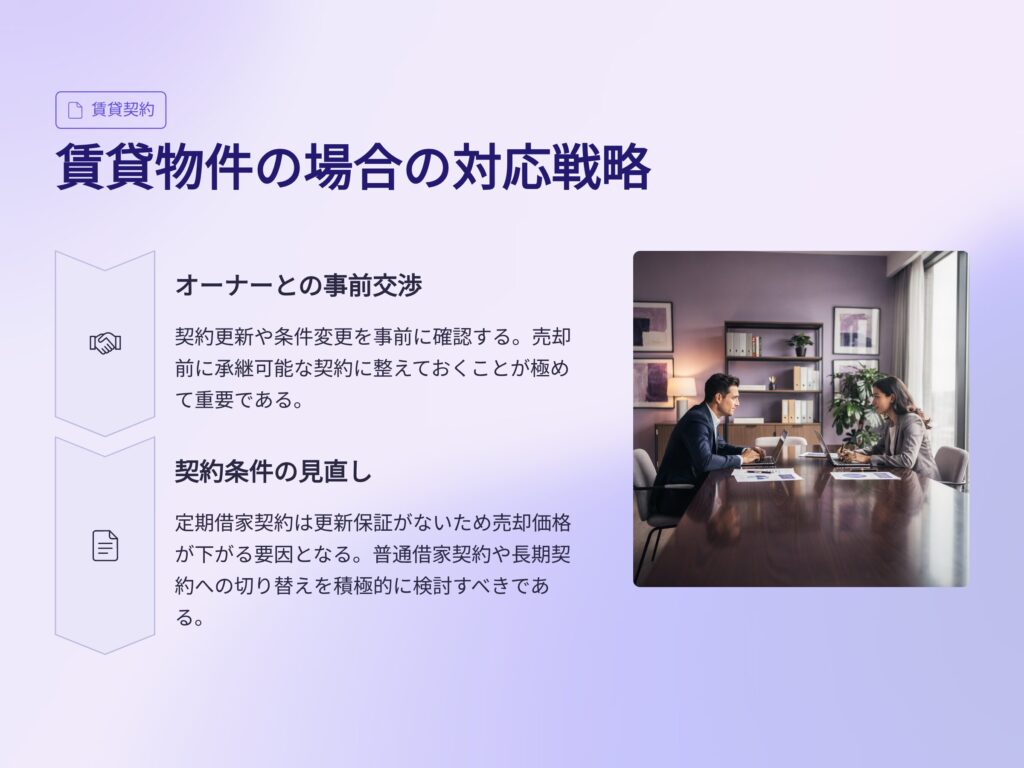 • 家賃増額リスクや立ち退きリスクも買い手の懸念要素