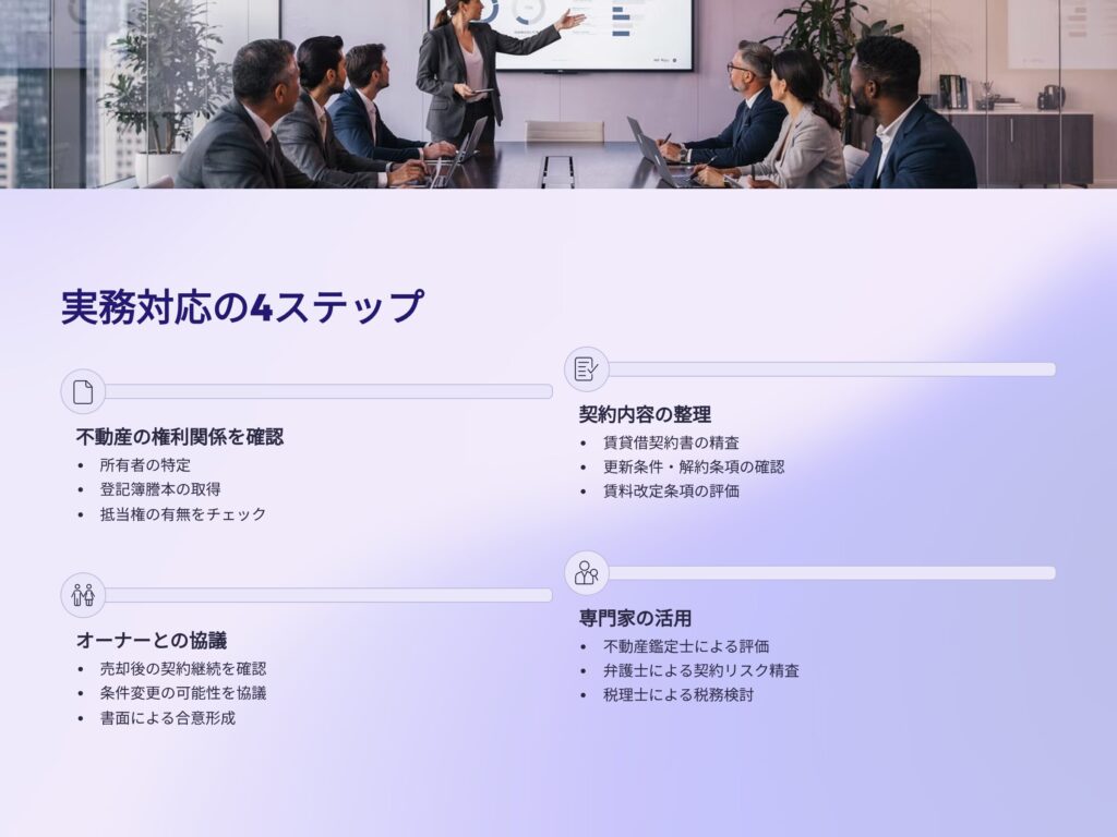 • 賃貸なら契約リスクを整理し、承継可能な条件に整える
