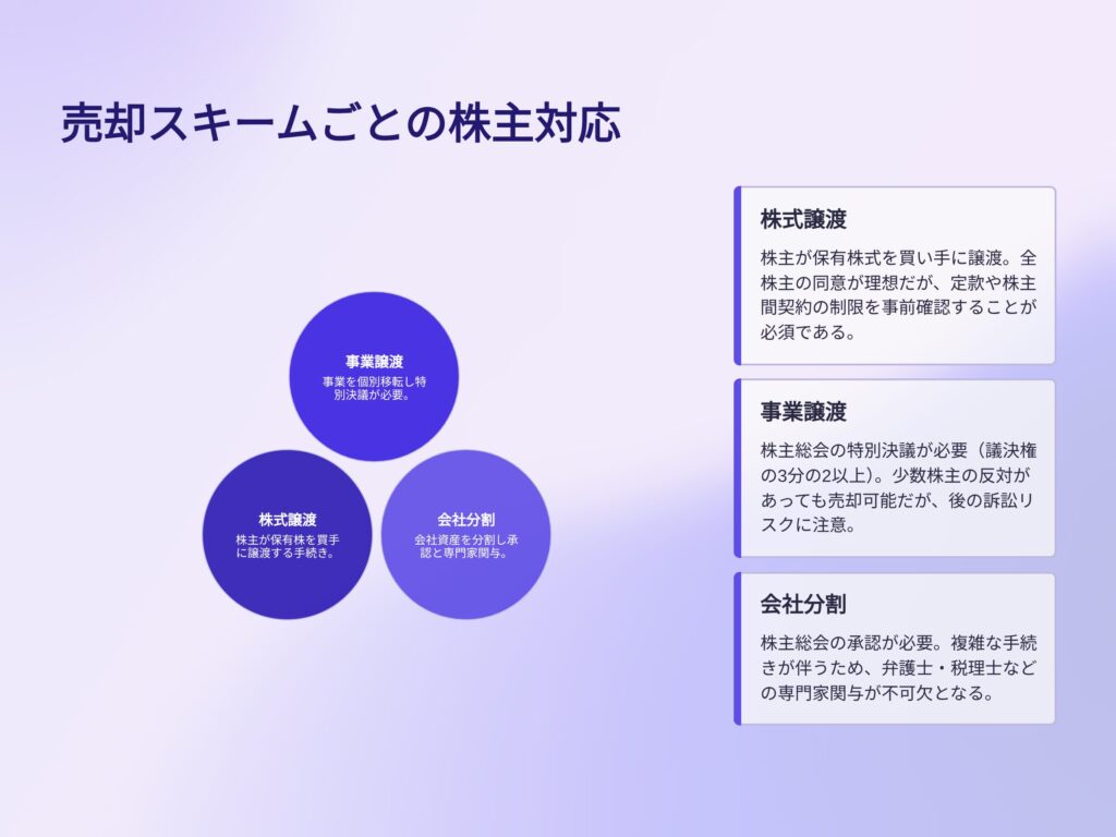 売却スキームごとの株主対応