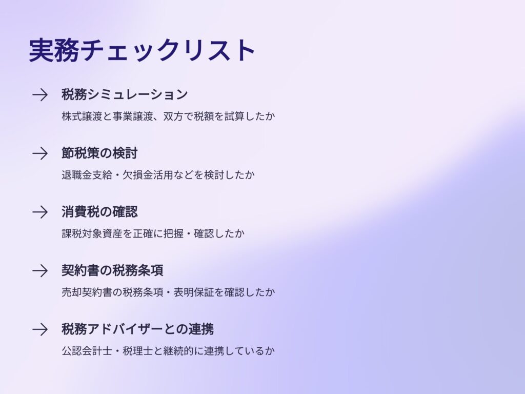 • 株式譲渡と事業譲渡の税務シミュレーションを行ったか